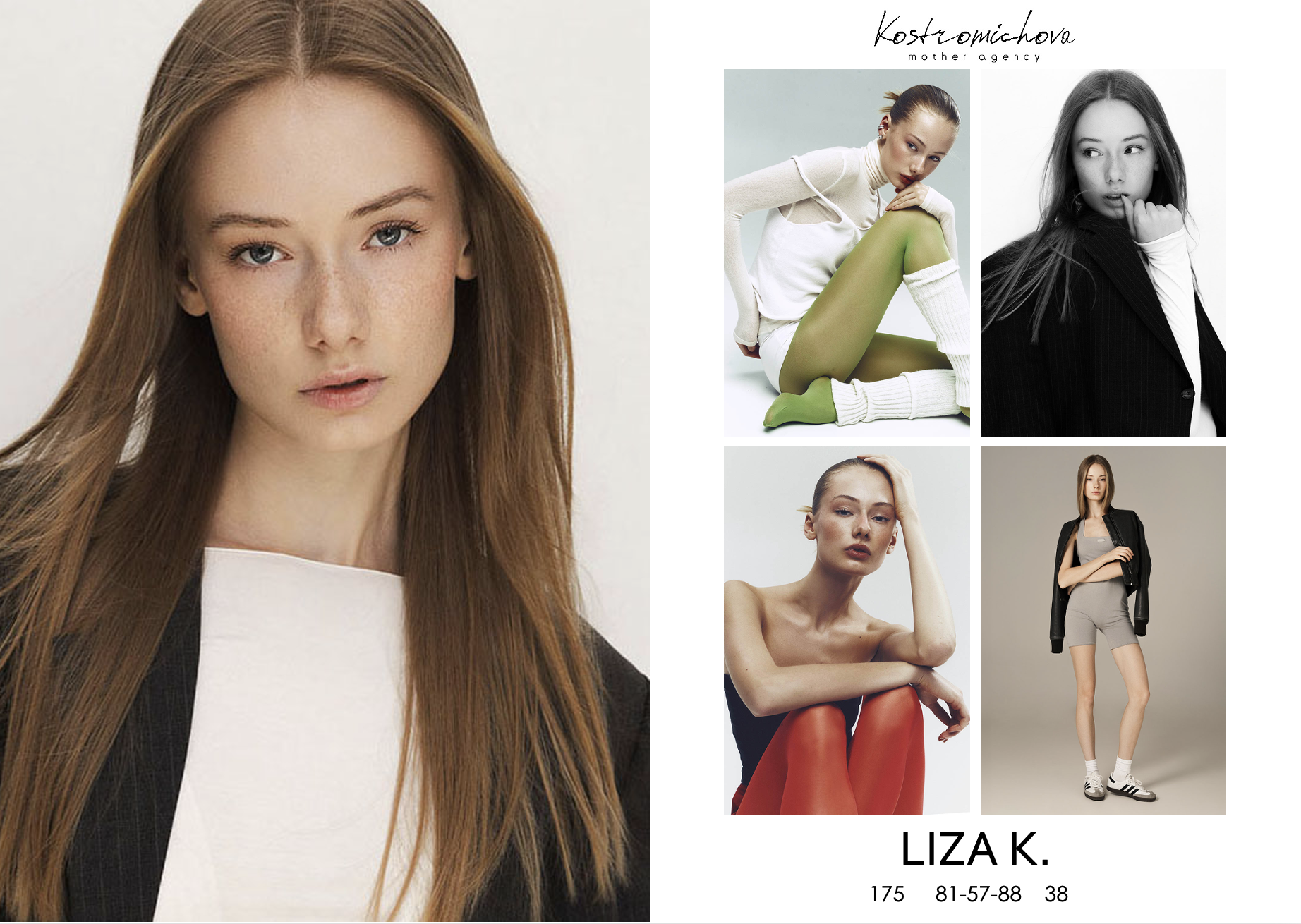 LIZA K. Book Snap Show Comp card height: 176 bust: 81 waist: 57 hips: 88 eye: grey hair: blond shoe: 39 Download